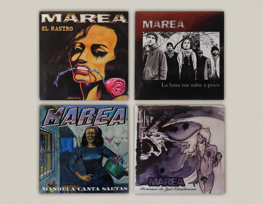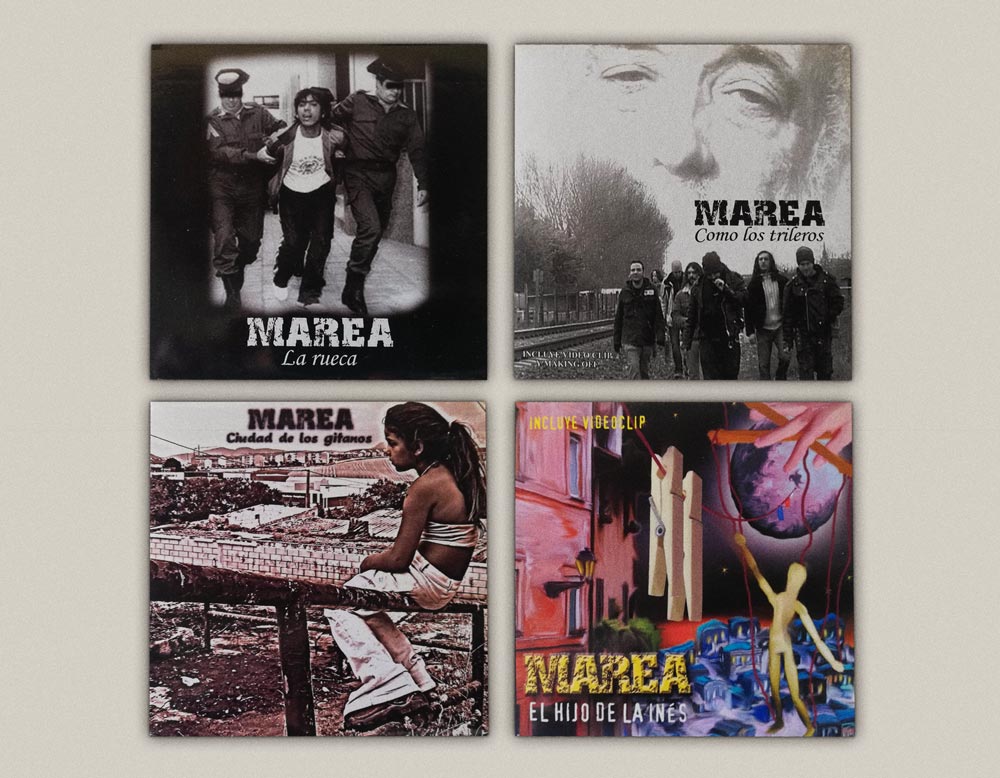 2004 vio un nueva ‘excursión’ a Madrid por un motivo que, a partir de entonces, a una con la publicación de todos sus discos, se convertiría en habitual: la recogida de un primer Disco de Oro por las ventas de Besos de perro, recibiendo yo también uno que me fue entregado por Alfredo Piedrafita: algo, recibir un disco de oro concedido por Marea, que volvería a disfrutar en 2007 en puertas del primer viaje transoceánico del grupo, (por las ventas de Las aceras están llenas de piojos, me lo entregó Rosendo); 2012 (por las de En mi hambre mando yo (me lo trajo Kutxi y me lo dio en nuestro bar de cabecera, el Manolo de Santa Engracia de Pamplona) y en 2019 por las de El azogue, recogiéndolo en esta ocasión de manos de Iñaki Antón y Roberto Iniesta: solamente por haber sido objeto de semejantes distinciones me considero más que pagado en el mundo del rock & roll. Marea en fin. Mis hermanos en lo bueno y en lo mejor, nada que reprocharles en tantos años de compadreo, ¡la madre del cordero, desde Nochebuena de 1997 la que han liado! La madre del cordero y del rebaño entero. Y de cuantas madres engendraron el rebaño. Mis Marea, única banda de su nivel y trayectoria que, tal vez porque se quieren, continúa conformada cerca de veinticinco años después por sus mismos cinco miembros originales. Y lo que te rondaré morena, siendo los mismos que cuando empezaron y como los dedos de una mano siempre, uno para todos y todos para uno. Como siempre fue, ha sido y será, capitaneados por un Kutxi experto en dibujar nuevas piruetas en cada nuevo salto mortal, demostrando siempre una fortaleza y una agilidad metal fuera de lo común: y, a la chita cantando, coser y cantar, ahí siguen, hilvanando melodías y emociones en su particular rueca, prestos al unísono a acariciar almas y espíritus con su música o a golpear: a dar golpes de mano con cada uno de sus lanzamientos, áureos ya por definición. Kutxi, Alén, César, Piñas y Kolibrí, más grandes que la luz del sol.