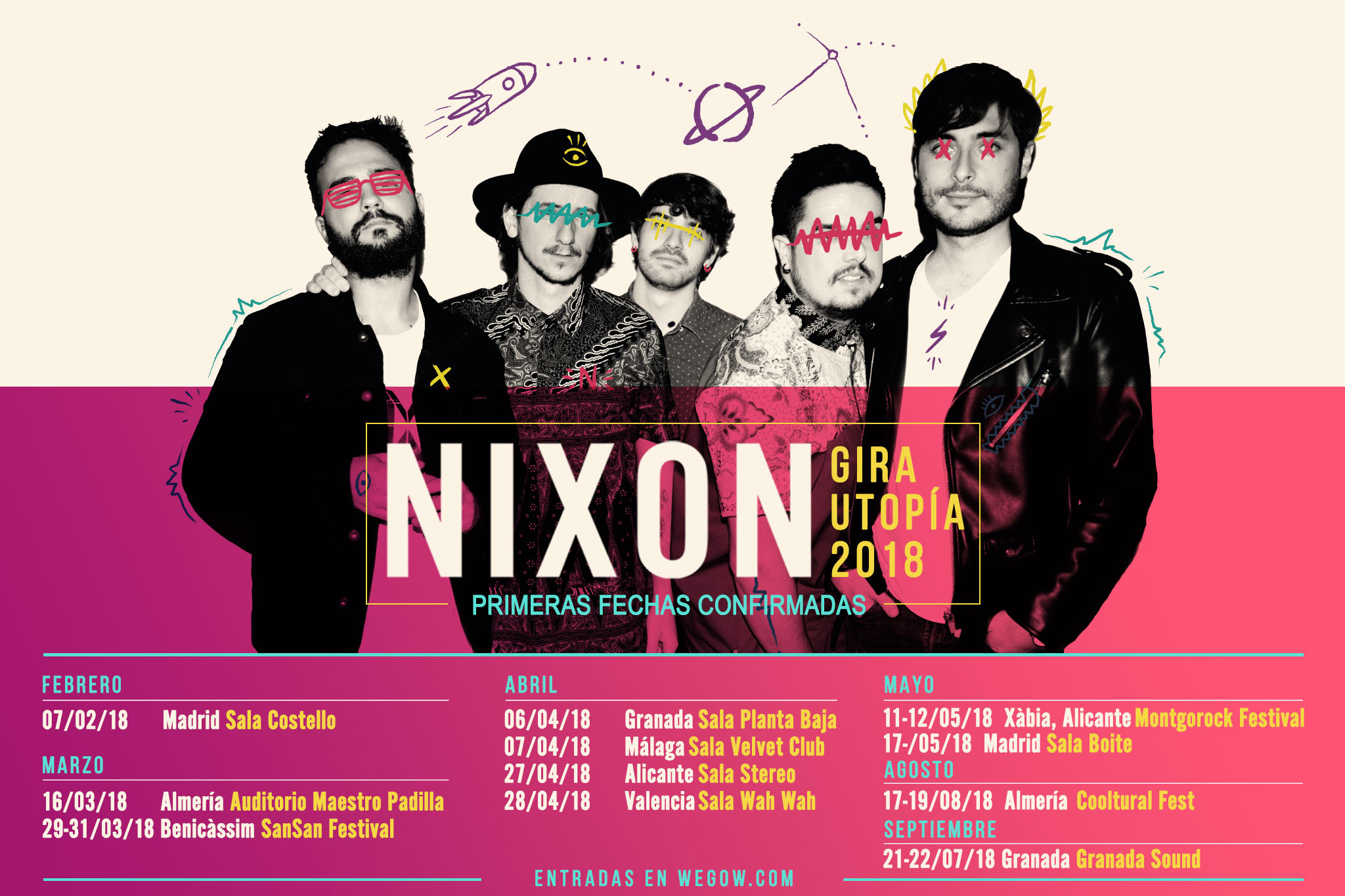 Con motivo del lanzamiento de Utopía, el quinteto colgó el cartel de SOLD OUT en la sala Costello Club de Madrid, dos días antes del estreno del trabajo. El primer tramo de su extensa gira contará con la banda en varias ciudades de la geografía, además, reflejando el excelente estado de forma de Nixon con la reciente confirmación para festivales como Granada Sound, SanSan Festival, Montgorock Xàbia Festival y Cooltural Fest.
