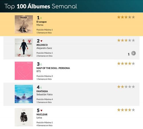 Marea Nº1 en la lista oficial de ventas con su nuevo disco «El azogue»