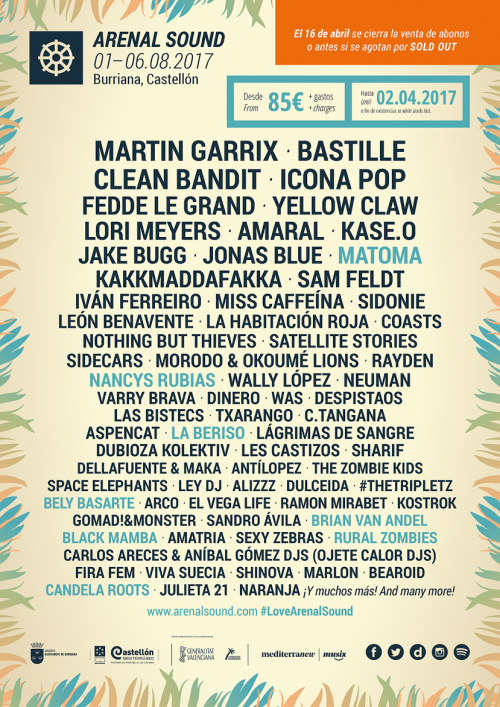 «Es un placer anunciaros que La Beriso estarán presentes en la edición de 2017 del Arenal Sound, ...